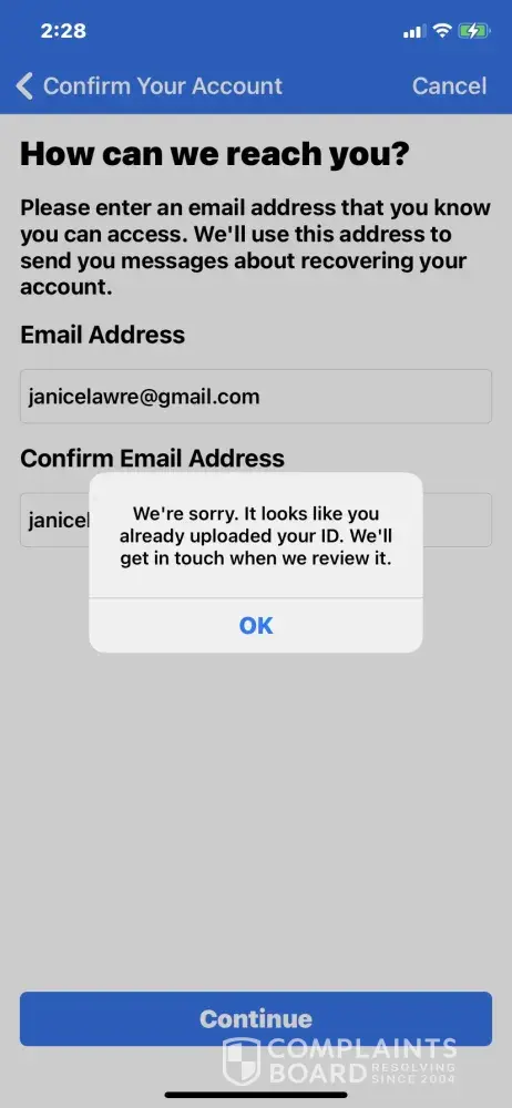 My Facebook account was hacked in December. Since that time I have submitted my drivers license more than 500 times by email. I have also posted numerous messages to the Facebook App page on Facebook. I got one response from someone named Ash a week ago and nothing since. I have several screenshots showing the notifications are being sent to 3 brand new email addresses yet my valid and current WA state driver's license is rejected - I believe because the license is being reviewed by Artificial Intelligence.