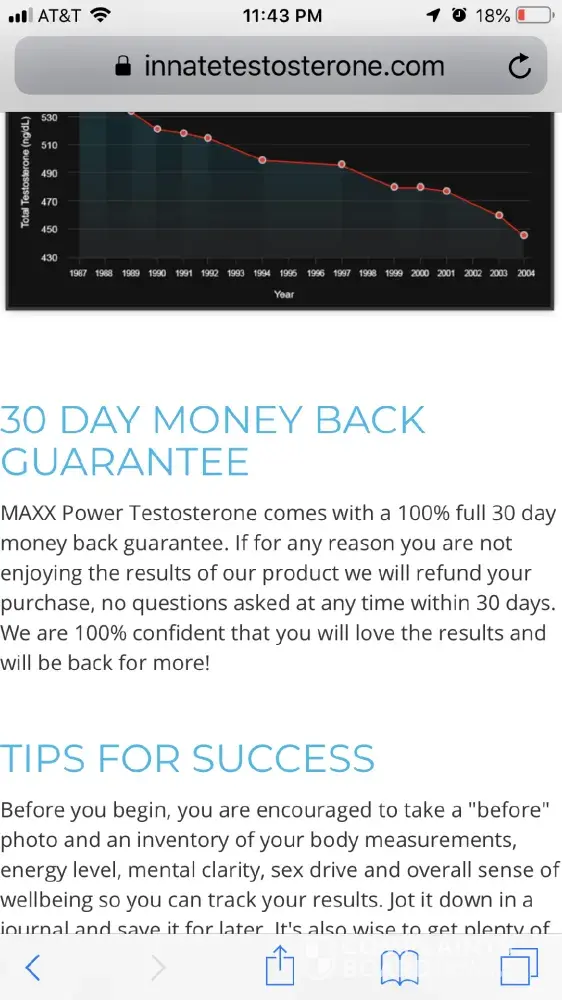15 Days Later you are charged $98.00 / $98.00 - the add offers a 100% Guarantee - No Money Back -but they will not refund.