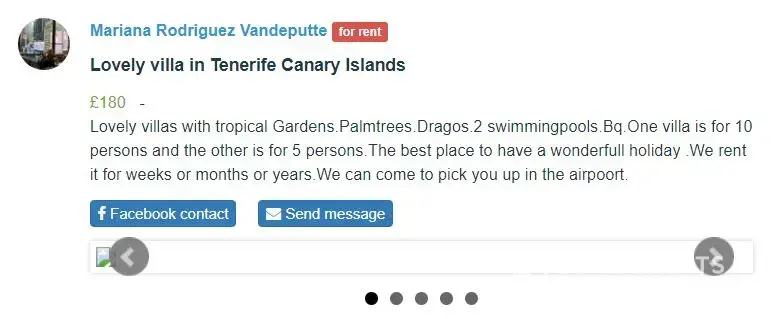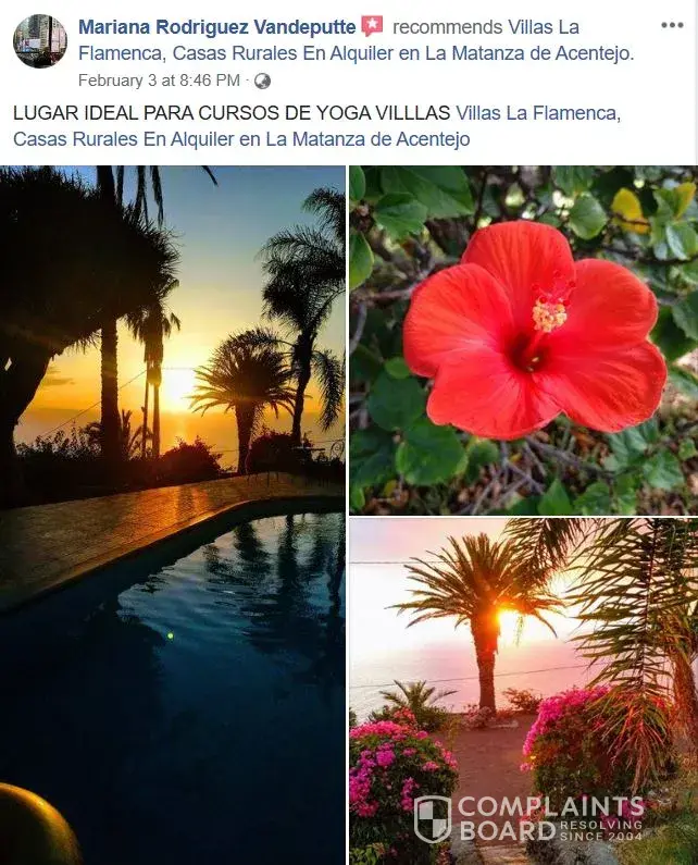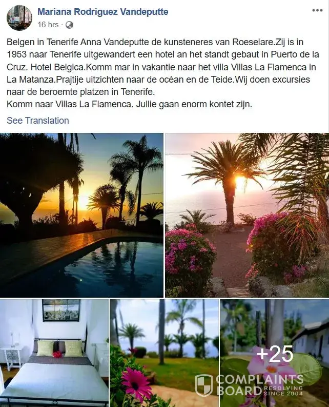 Villa la flamenca located in tenerife (spain) is a scam. It's not a hotel and it's not a vacation rental. The person posting fake pictures of this place online to lure victims is a belgian who resides in the canary islands. Her name is mariana rodriguez vandeputte.