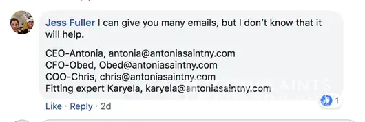 antonia saint ny dissatisfied customer page