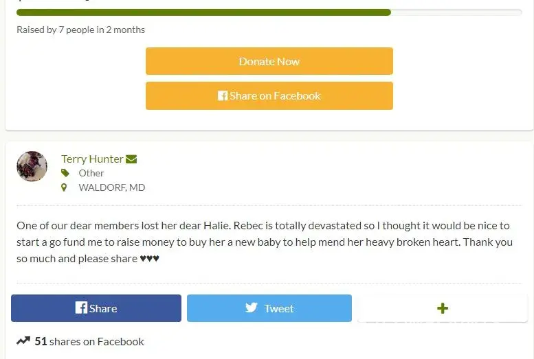 Terry Hunter his wife Sherri Wright-Hunter, Rebec Gladden, MaryAnn Moller, & Kristi Peterson tried to pull off a ripoff collection scam for a puppy purchase that only cost $200.00 with a funding campaign set at $1300.00, Rebec had lost her dog Halie and Terry set up to help her get another dog of course in his mind this was a way to collect fraudulent funds on this new puppy to be purchased, Rebec has already been caught in several other face book groups for pulling off scams on her dog Halie, so the five of them and others was involved in the Ripoff Go Fund Me fraud, Rebec was offered three rescue dogs turning these down because both wanted the money left over to spilt on this puppy that only cost $200.00 and asking $1300.00 on this for this new puppy. Terry & Rebec asked several groups and others to post the funding links on their personal walls but was declined others feeling was if you could not afford to care for Halie how would you take care of this new puppy Jeannie, One Chihuahua group advised them to lower the $1300.00 asking funding it look like a scam, later he was attacked also them making up false allegations on him, Rebec, MaryAnn Moller, Kristi Peterson was all already caught involved in collection scams in a large Chihuahua group on face book and was caught by the Administration of that group for several bogus fraud schemes, Collected on a taxi cab to take Rebec & Halie to the Vet when she already had a ride, Cremation of Halie body scam after Halie passed away, Using other members dogs Vet bills to collect on a Pay Pal scam, Asking funds for a dog stroller and over collecting on the amount of the stroller. Collection scam on a necklace to place Halie's ashes scam, Rebec used this money to go into the dog cloths seamstress business buying several yards of material to have others purchase her cloths at Halie's House of Fashion, Kristi Peterson has been the worse to help this gang cover up scams threating several people, even a phone threat was receive and Sheriff Dept. report made on this phone threat to blow up on of those administrator that blew the whistle on these pack of thieves We do have 100% proof and evidence of these scams and several thousand witness to these scams, links are provided to block these people from your personal face books, they are not to be trusted, Maryann Moller is a extreme dog abuser herself .