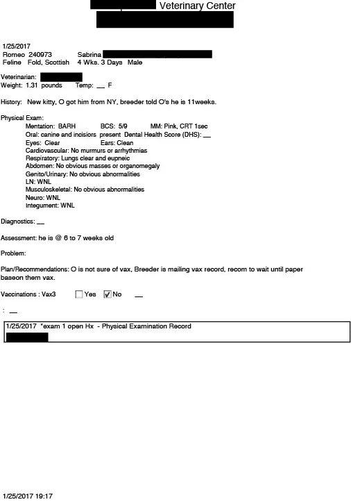 •told me that the cat was fully vaccinated but sent me fake paperwork (On a canine form) *picture attached*