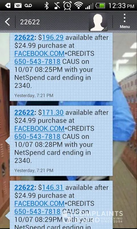 5/23/13 FACEBOOK.COM*JY625 www.fb.me/cc CA- $9.90, ..facebook.com, ...*C8725 www.fb.me/cc CA- $9.80, ...*E8725 www.fb.me/cc-$9.90, ...*AA725 www.fb.me/cc CA- $9.90, ...*8A725 www.fb.me/cc CA -$9.90, ...*GA725 www.fb.me/cc CA -$9.90