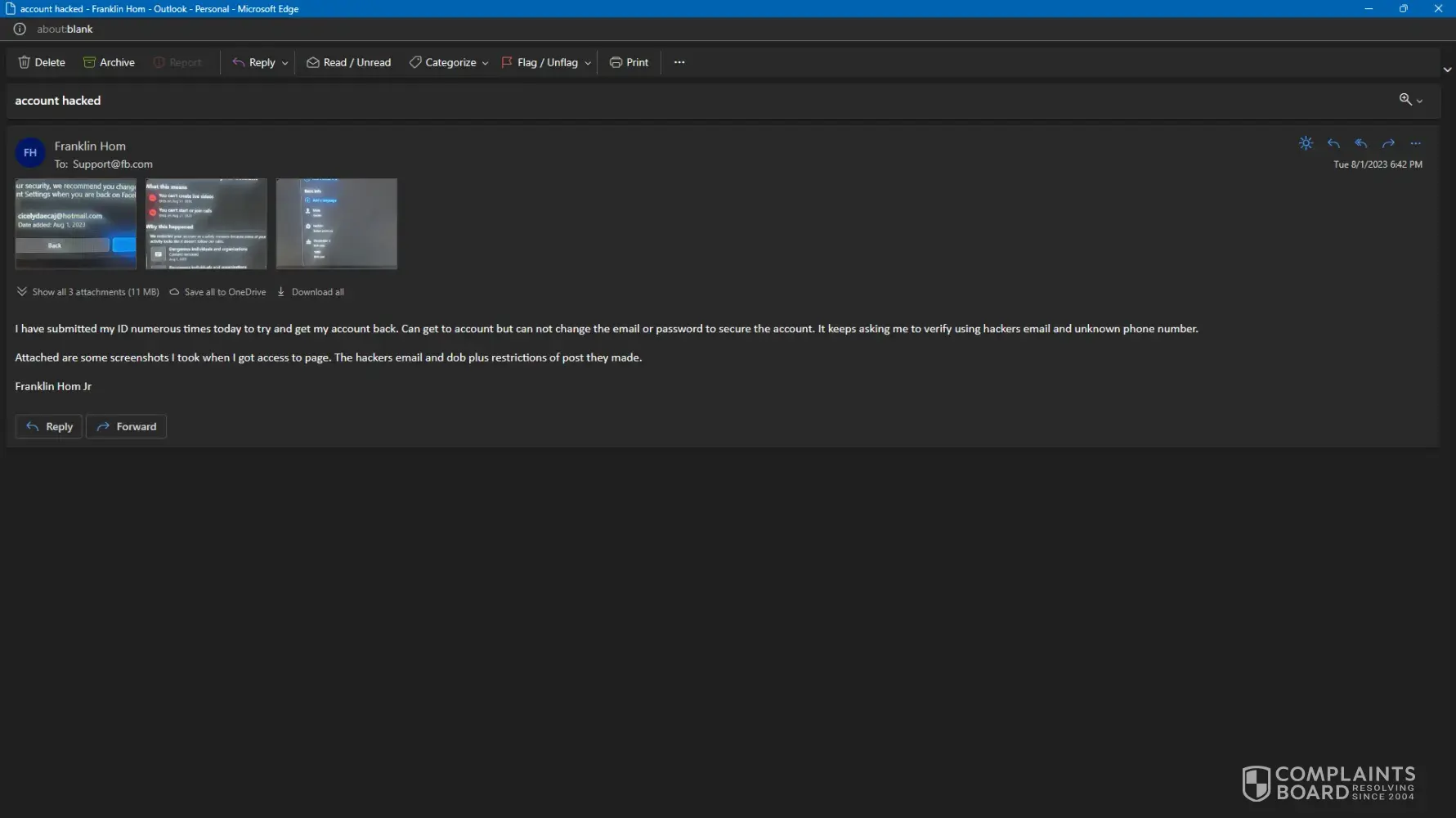 Desired outcome: My Facebook Account back as personal and Business Data who knows what hacker doing.