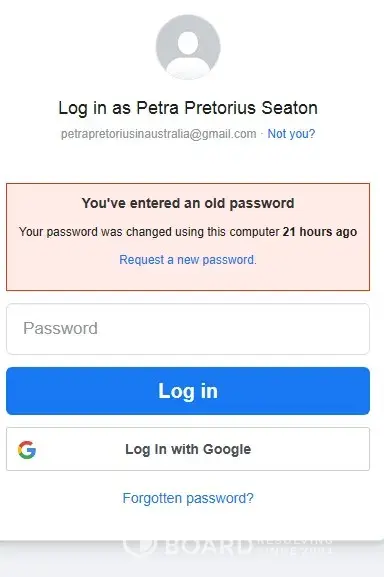 Desired outcome: Nikkeya bell3/30/77password old: [protected]@password new: Alabama330I would like to be able to get into my facebook personal page and business poemfect gift pagethank you so much