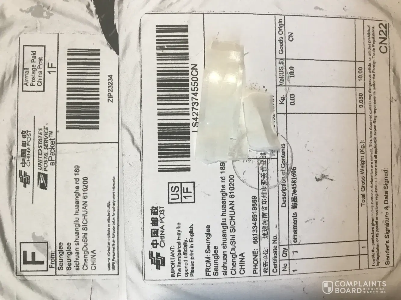 This was ordered from Seunglee Seunglee, Sichuan shuangliu huaanghe road 189 ChengDushi Sichuan 610200 China.