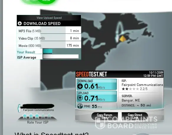 Yes Fairpoint Communications DSL speed is extremely poor. Especially to Monmouth ME.