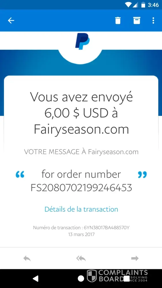 When I checked the reviews I saw that many people were dealing with the same problem. FairySeason are scammers, they take customers money and disappear!
