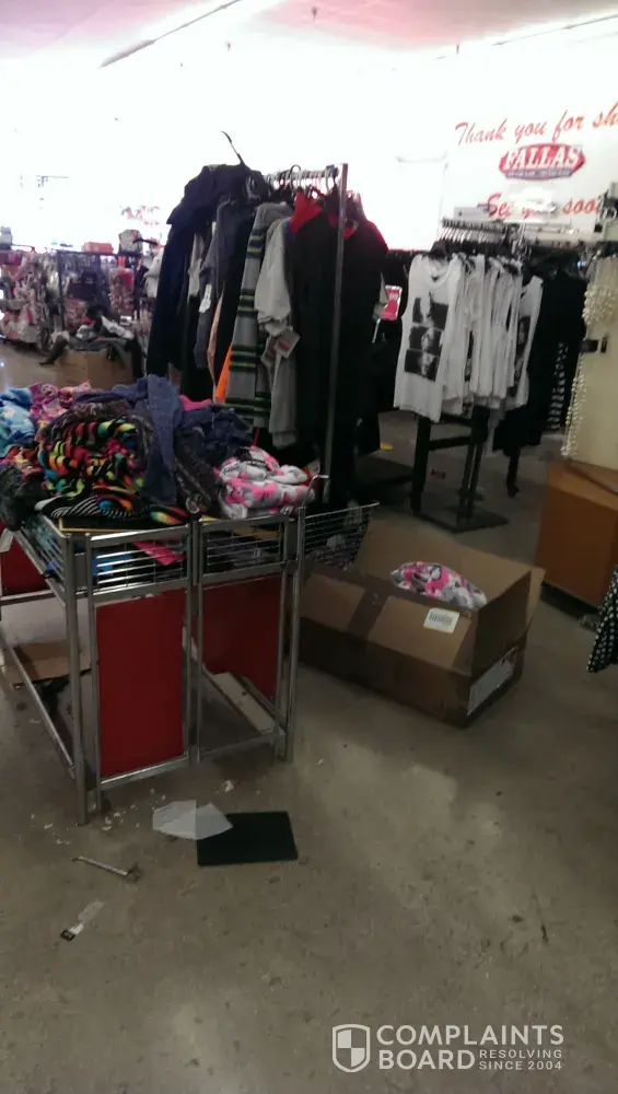 When I go into any Fallas Paredas stores my main complaint that I have is that before customers purchase their clothes they might want to try them on before you buy them and there is no dressing rooms in the store at all. Then when you want to return them back there is no refund given back. To not ask for a return then I think the store should have dressing rooms in the store to make customers not be so angry about their purchases. That makes me not want to go back into your store again.