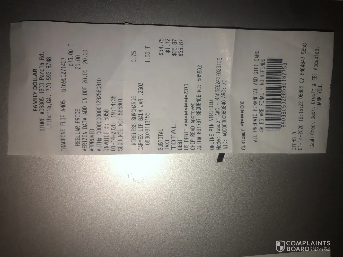 Read full complaint$20 for 60 minutes add-on card for a prepaid phone