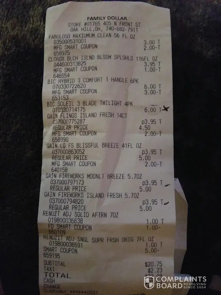 I just found your app for couponing. The first time I did it it worked perfect. I tried again me and my aunt both tonight 11/02/2019. Your store in oak hill ohio had a sale so we tried tonight. It wouldn't except the coupons on your app. It over charged me $6.00 for one bic razors. They were suppose to be $4.00 off. I got charged full price on one and only $3.00 on the other. Plus your gain fireworks was on sale for $3.95 the app said buy 2 get $3.00 off. Your store said there was a $2.00 coupon off. I used all digital coupons. I was charged $3.95 for each. They should have been $1.95 each from store . and razors should have been $3.00 each. So I was out of pocket around $10.00. My aunt's price did not come up the right price either. We were both getting about the same thing. So she was out around the same price. Sorry I don't have her reciept. Please fix your app . we can not even scan items in your store even your workers said no one's works. I also coupon At dollar General and I've always gotten great deals. Please make this right.or we will not be shopping there anymore and we had planned on doings this together once a week..Thank you.