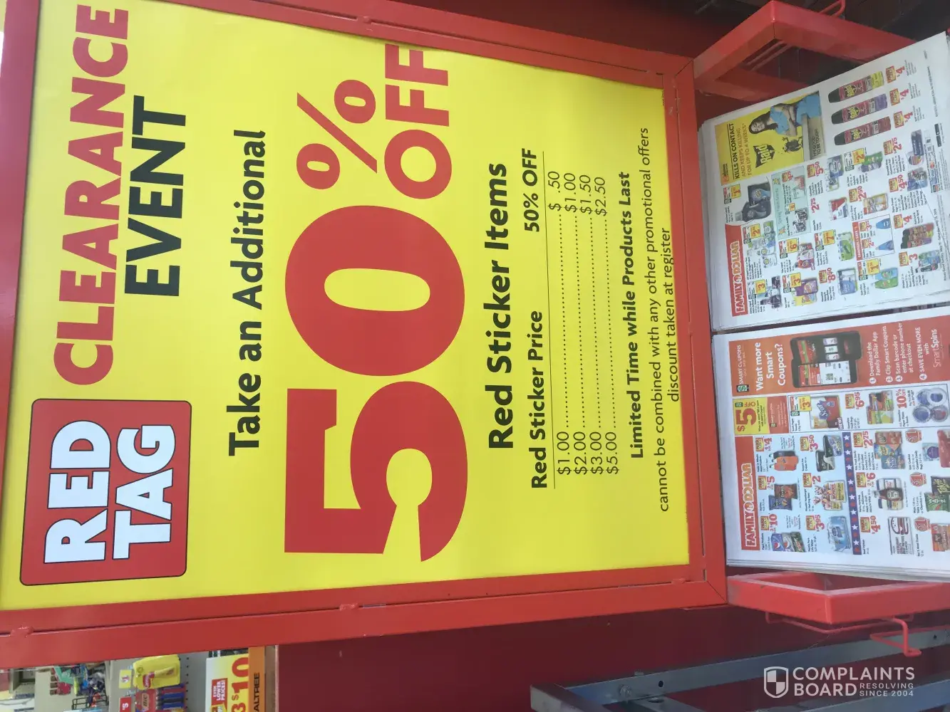 Went into the Family Dollar last week in Jackson, Louisiana for graduation cards. They had their clearance event sign, that stated "an additional 50% red tag". I had a shopping cart full of items, got to the register and they were ringing up for red tag price only. Asked the cashier and she said "it is what's on the ring up". I pointed out the clearance sign that was behind her and she said it was nothing that she could do because they can't have a lot of price changes and she didn't want to lose her job. I asked her to call the manager as she said he had just left the store. She called him several times and he didn't answer; I left the items there and departed the store. I went back to the same store today. The same cashier was there, I asked if she had spoken with the manager about the sale and she replied with "he said some stuff is and some stuff isn't". I bought 2 items (pictures will be attached). They have red tag prices yet, they ring up for half of the original price and not half of the red tag price. Again, no manager was there for me to address the problem with. There are multiple signs throughout the stores that says "an additional 50% of red tag " there are even signs that give examples of red tag price and the additional 50% off price yet this store isn't honoring that.