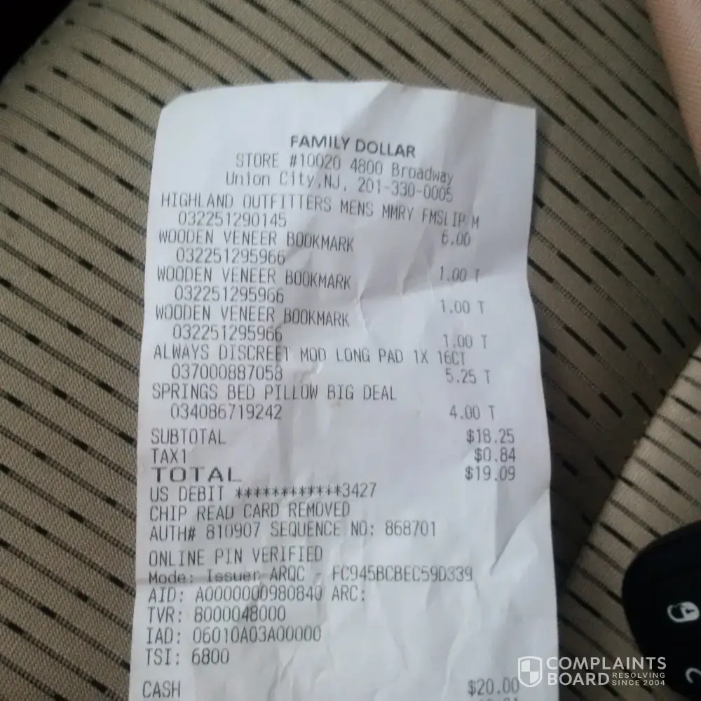Family Dollar charge to my debit account and paid cash due to casher's error!