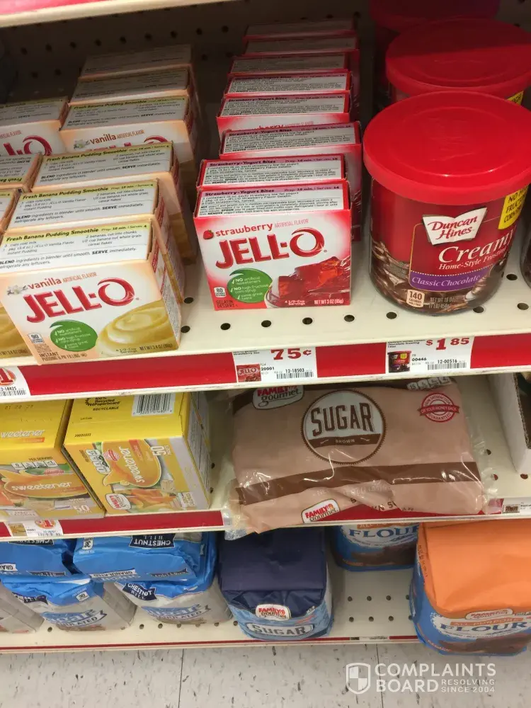 under neath the price was .75 cents a box, , i grabbed 3, when it rang up at $1.00 a box i said something to cashier, she said oh well i will let him know later, , well that was on the 19th of oct, yesterday i stopped in for one other item and jello still said .75 for the strawberry, , so i went and took a picture of it on my phone.. they do not want to make anything right, , had trouble with workers in the same store 8-10 years ago just recently started going back, , , i guess bad decision. i am keeping both, so mad thinking of talking to a lawyer as receipt is dated and picture on phone dated as when taken. Store number [protected] e morgan st kokomo in 46901