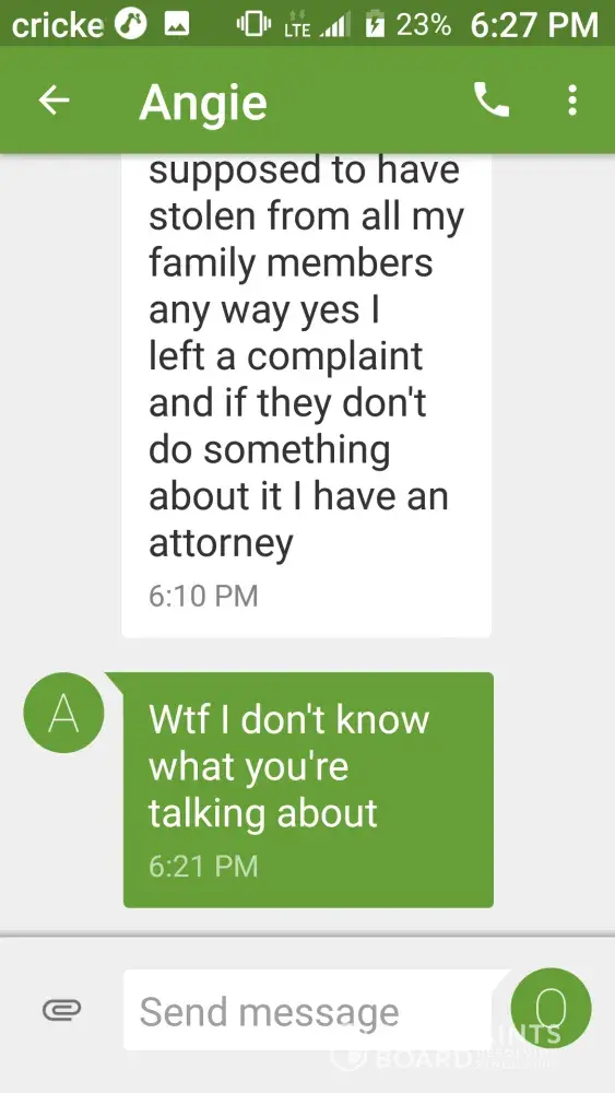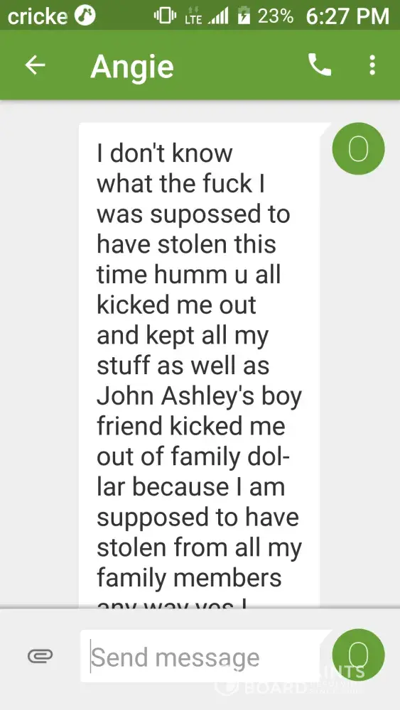 My sister told John o steal from my family memebers I did text her and she texted back soon tknow what the [censored] I am talking about I have screen shots of these messages