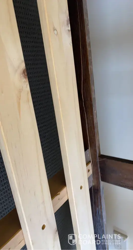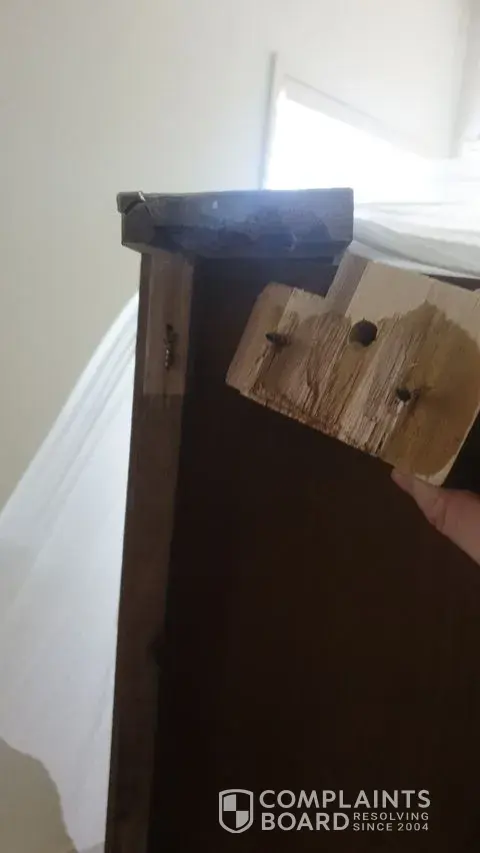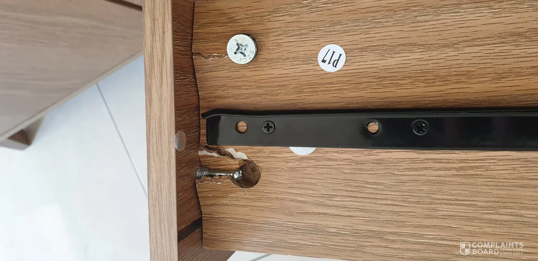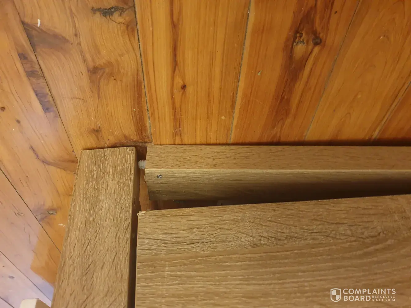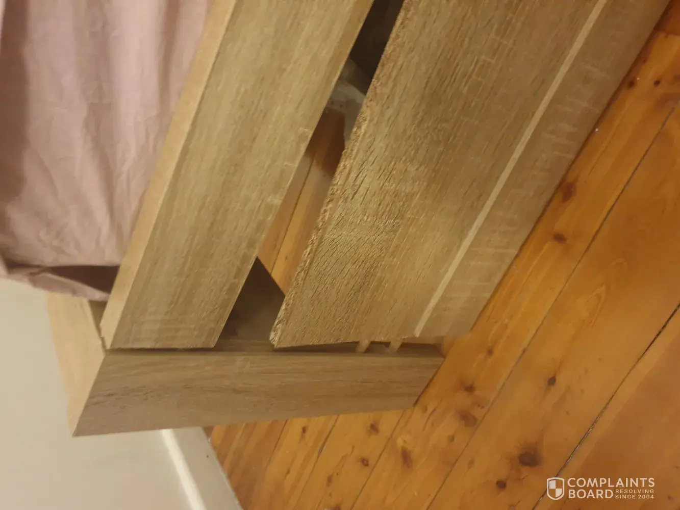 So, I rolled in the bed, as you do. I feel through the bed. The slats fell. I hurt my foot. Sent a video of it to Fantastic Furniture via messenger. No response. Came home from work, had a closer look at the bed. Crack in it, coming apart on the left hand side.
