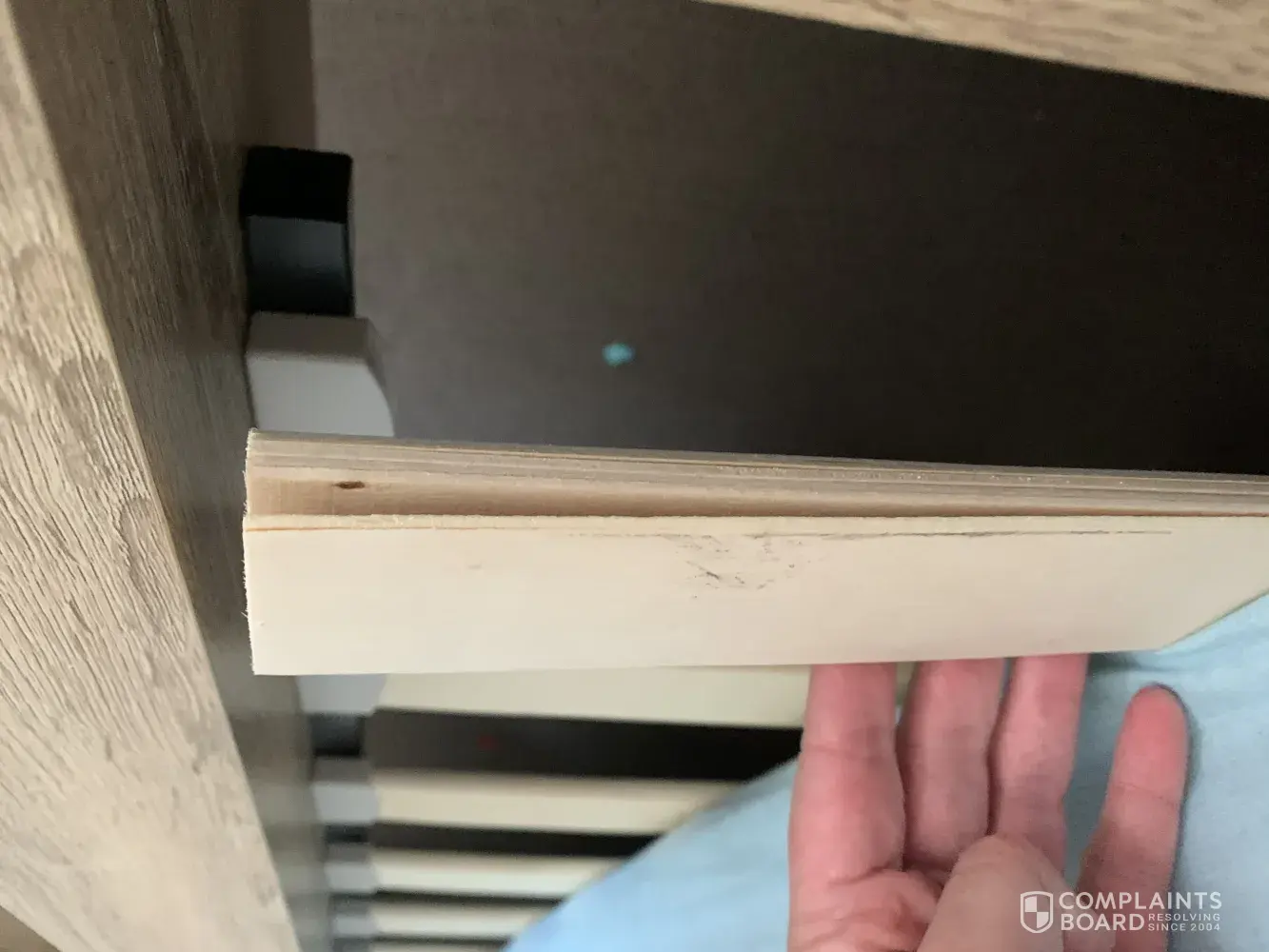 The bed from has cracked. The slats have slit and my dresser draw has marks on it as soon as I opened the box. I wasn't going to complain but only just notice about the slats and bed frame when I was rotating my mattress that you say to do.