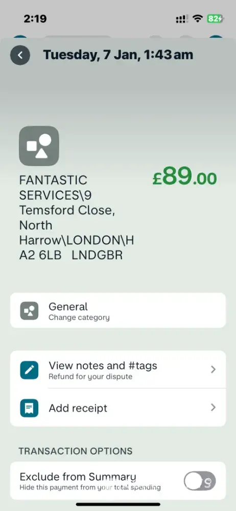 It began when I cancelled my fantastic club subscription of £89.00 (yearly).On January 4th 2025 fantastic Services took £89.00 from my bank account on January 7th 2025 I raised a dispute with the merchant which is Fantastic services on and I won and got my £89.00 back but on 6/03/2025 the money was taken again and since march 7th 2025 I have been trying to get a full refund I telephoned your Customer Service and they are now saying that the payment was rejected and as a consequence no ARN number was generated and it was over your14 day guarantee please remedy this situation A.S.A.P