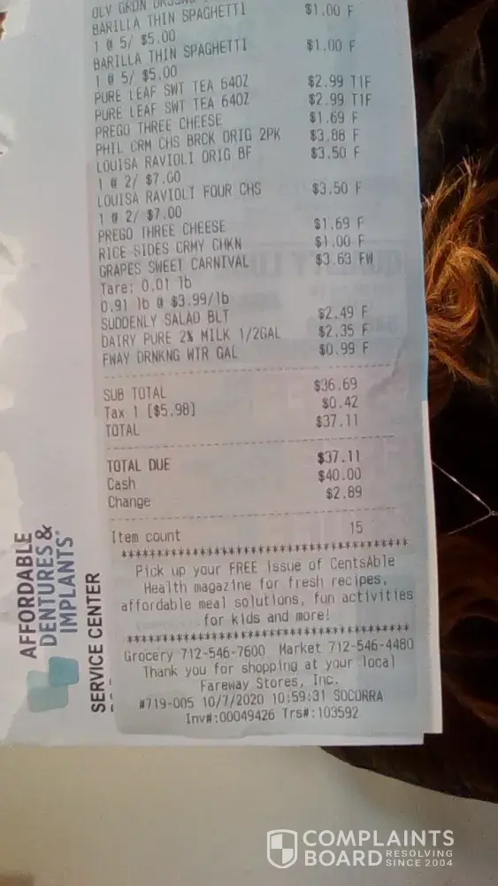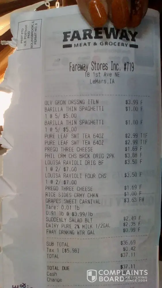 Read full complaint9 Fareway Complaints