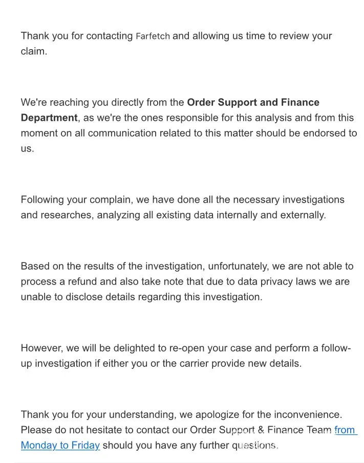 This case is really sensitive, after order farfetch never reply my submits. I submitted 2-3 times and it seems like farfetch is ignore me