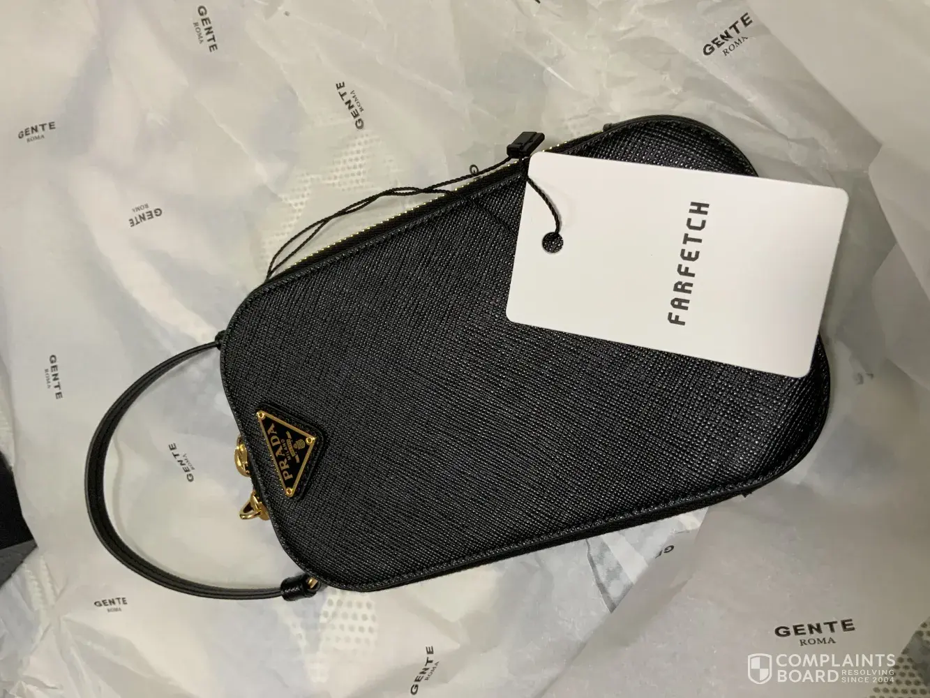I have phoned Farfetch three times, and after being told that Browns located the original Gucci Box, and would send both the box, and authenticity/ swing tags I was then told that the box was lost and the one that Browns located wouldn't fit my handbag. I asked for the swing tags and authenticity cards to still be sent to me, and they arrived today, only to be a swing tag with buttons belonging to Gucci tiger print tie neck blouse.
