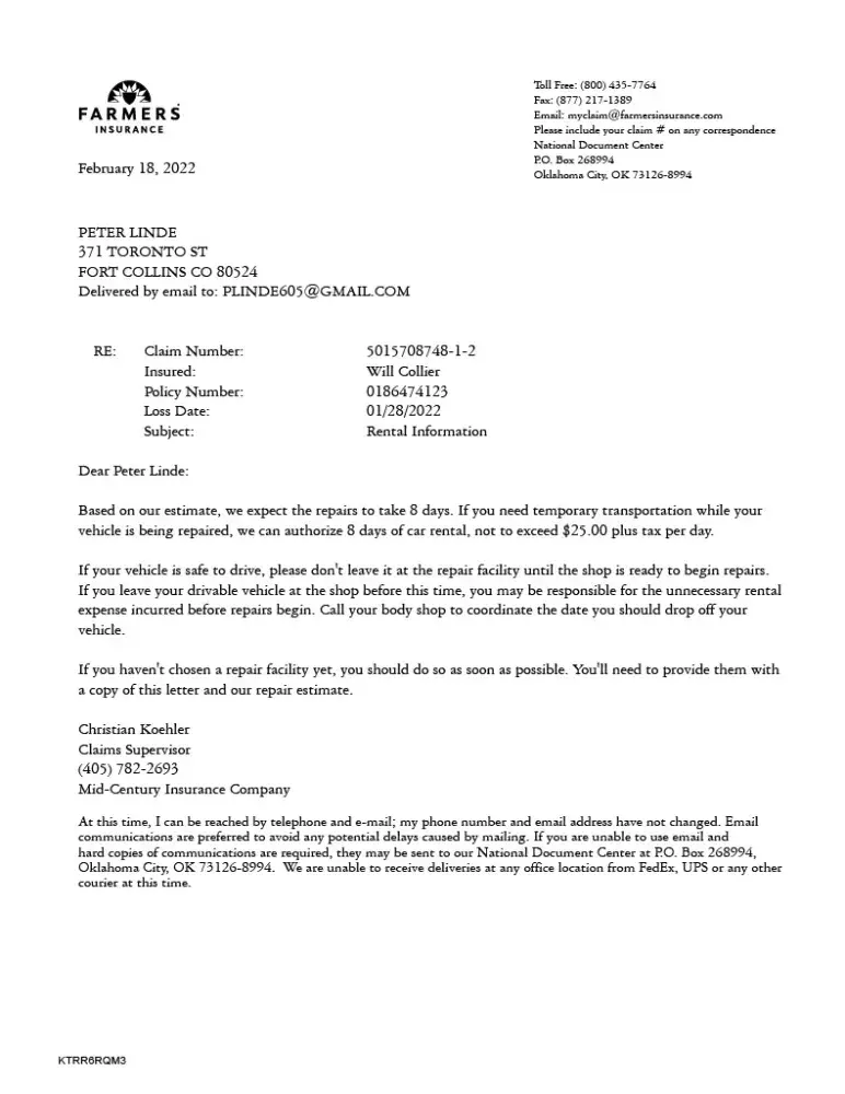 Please add this copy of the email from Mr Hector Villalobos to my complaint made here on August 13, 2021. It is regarding Farmers Insurance Group — False statement made to Farmers by your Insured party. Claim #[protected]-1-1.
