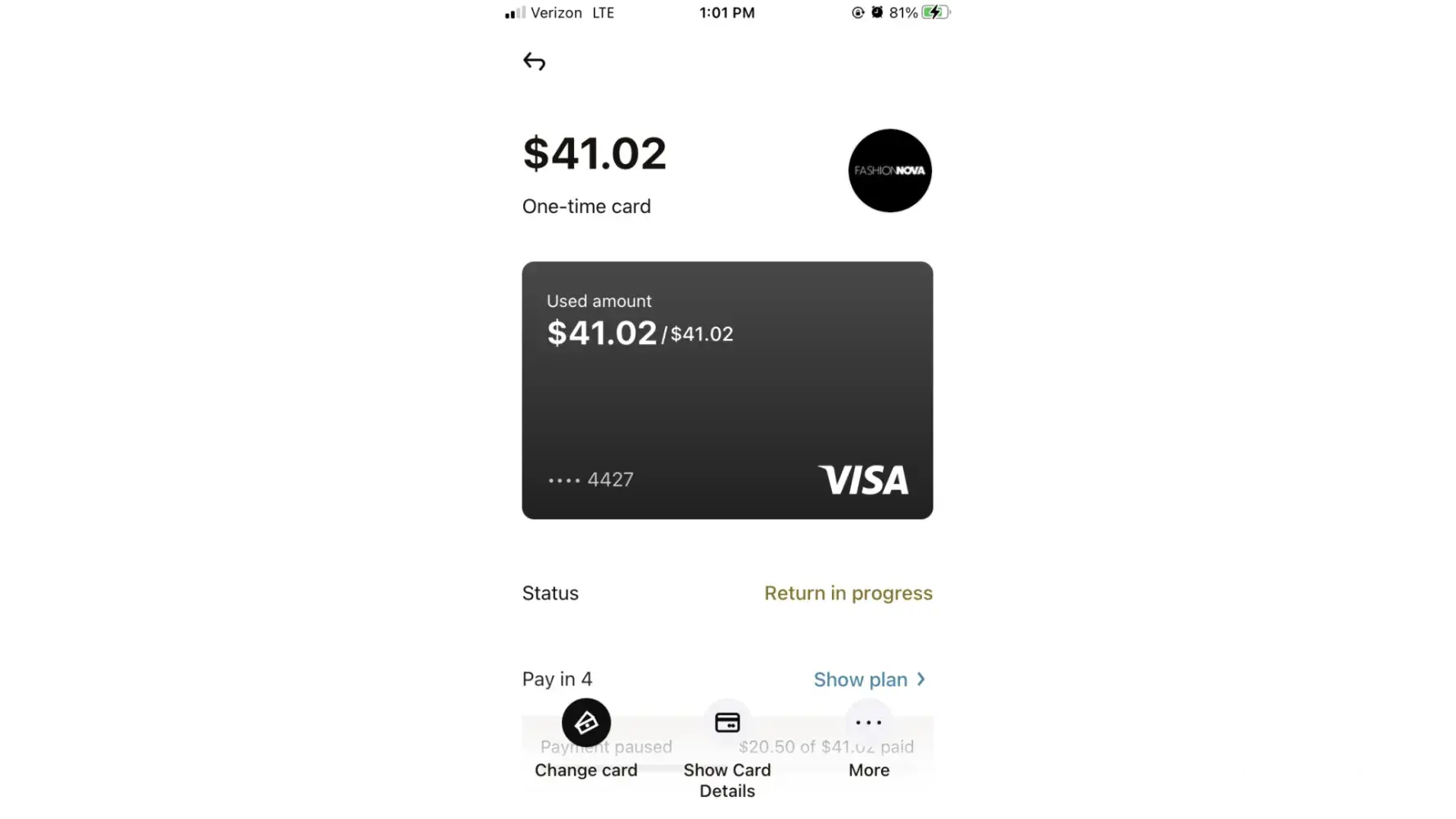 I returned an item to fashion nova in June. It states my return is in progress and klarna is waiting for fashion nova to confirm, Mean while My card has been charged twice already. on 06-23 and 06-25 for $10.25 each time. The order reference number is XL2VKPN6-1. Klarna states I am due for another payment on 08/29/22. I should have no payments for this item. Please advise