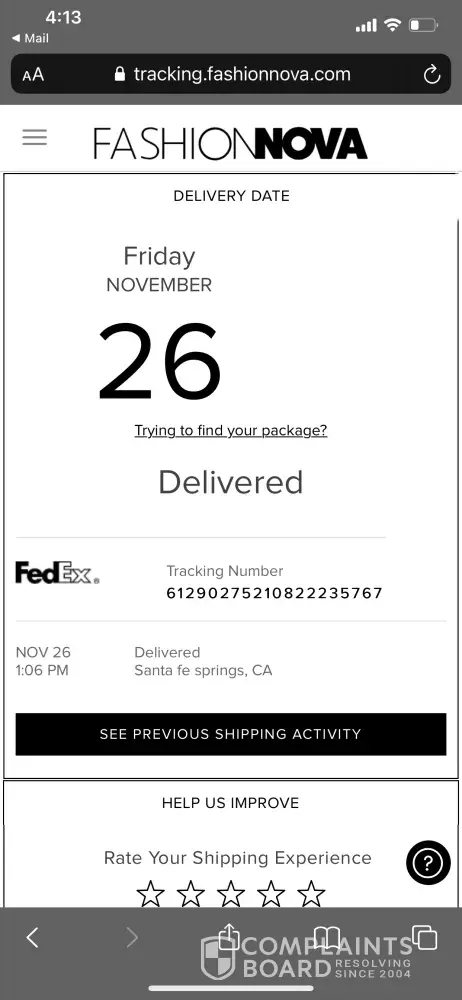 I currently have 3 pending orders with fashion nova and no delivery date in sight after 4 weeks. I received multiple emails with delivery dates that passed and still haven’t received my orders. I sent fashion nova emails, reached out on social media, lastly wasted my time with their automated help center. Still Nothing! I called Fedex countless times trying to get some kind of answers, I even offered to pick it up since the location is showing in my city for the past few weeks. I’m frustrated and no longer wish to deal with this. I have other things I can be doing that spending long wait times trying to locate packages that I paid delivery fees for. One of my packages are actually a gift card purchase from a previous order that they say was “delivered†but I never received and my cameras don’t show it being delivered. Fedex customer service just tells me the can’t give me information and that I need to contact my seller. Which his weird because I do a lot of business with fedex and they’re usually pretty good with locating and providing shipping dates. But since I switch my address from my residential address to my PO Box address my package is suddenly stalled and pending a delivery date that’s usually four days. Something is going on and I don’t like it.