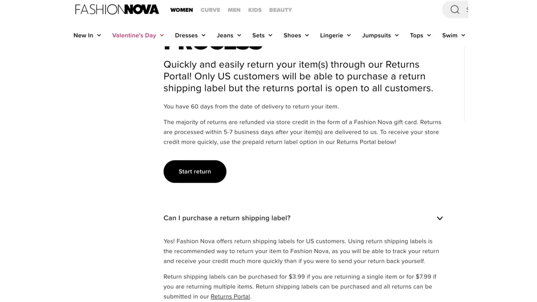 Unable to do international returns without spending almost the equivalent of the cost of the products that I want to return. FYI it costs $66 for tracked package from Singapore to LA. The cost of the goods to be returned is $98. It's a rip-off! They sent me a 1X (equivalent of an XL) instead of an XS and then expect me to go through their non-existent Customer Service to send in a ticket? Fine, I sent in a ticket, created the packing label for the returns and then realised that you can only purchase a return label for those in the US. That means for international customers you are footing the full bill for shipping it back to Fashion Nova!