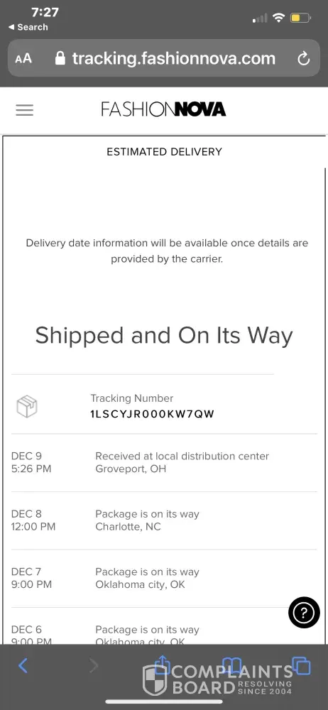 Hello. My name is December Brown. I am contacting you, because I believe the shipping carrier that fashion nova sent my package in, stole my product. & I understand the holiday problem, with packages being delayed but that is not my issue & the customer service people who respond to my issues are not giving me the answer I need. I placed my order on November 20th, and my original shipping date said I would receive my order on November 25th. Now I knew that was a long shot, being November 25th was Thanksgiving. But then I figured, okay it will be here in a few days. So lasership (the company that has my package) updated the app 2 times, (after contacting them) to say my package arrived at their facility. Mind you my package arrived at their facility on November 26th, so them posting two new updates that say my package arrived at a facility that was already there, tells me there is some kind of miscommunication, and/or error that should have been resolved because I have been contacting both lasership and fashion nova about this issue, more than 3 times for both I can say. Lasership more than that. Everytime I contact one company, they tell me they cannot do anything and to contact the other. That has go to be illegal. My FIRST ever experience ordering through fashion nova and right now, I am 100% sure I will never be ordering with this company again. Please respond to this email at the earliest convenience possible. I just want my outfits or my money back. I don't want to cause any issues. I just want to fix this. Please contact me via email as soon as possible. [protected]@gmail.com
