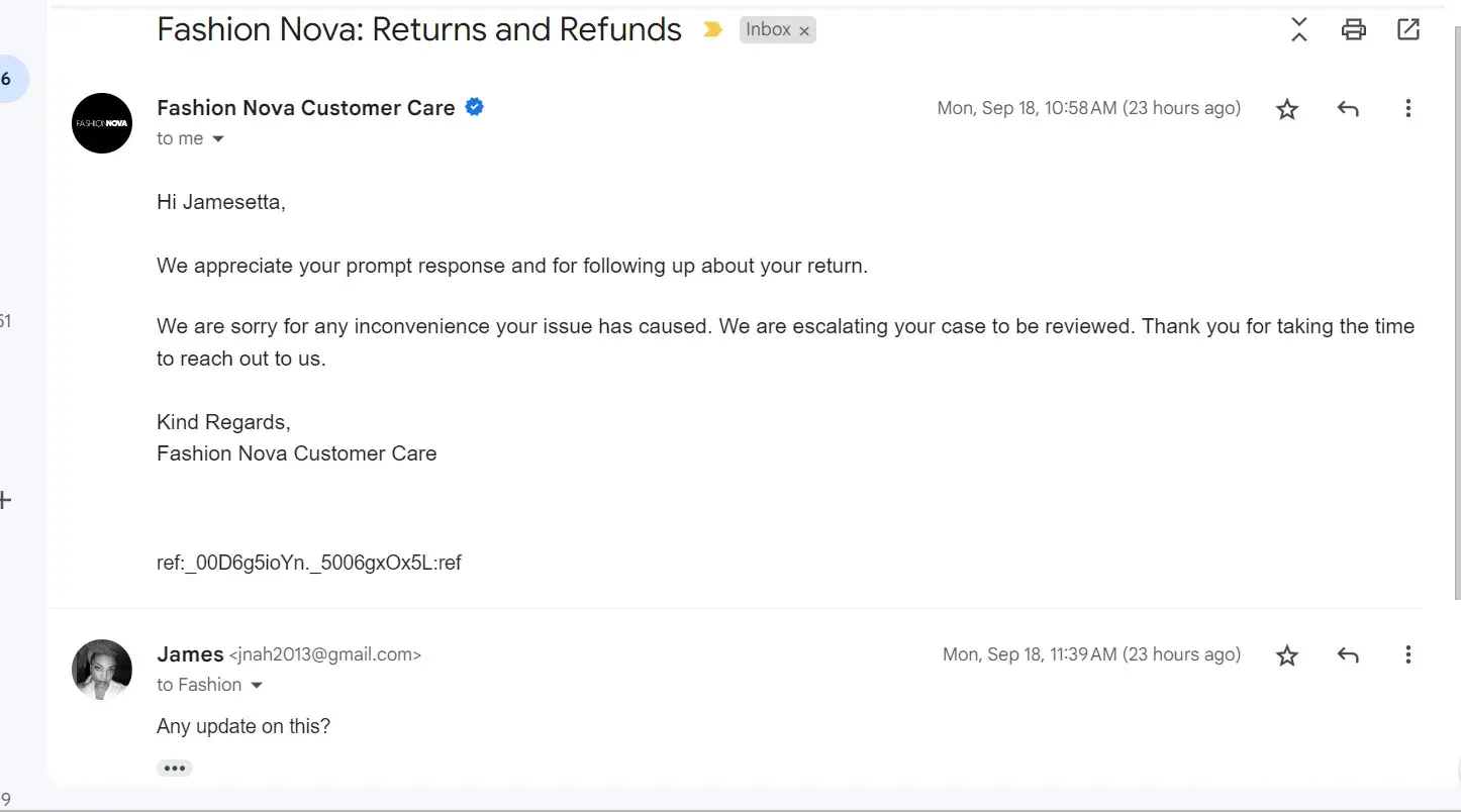 I urgently need this refund because I am a business owner and this is delaying my business. This is my first time ordering from Fashion nova and I am so confused.