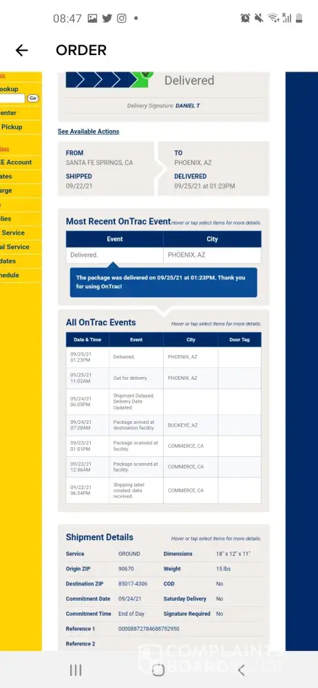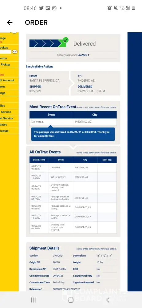 I placed an order on September 22 for a total of $281.97 with a total of 21 items; 12 jeans, and 9 dresses. I had received orders before without any issue. This order however was a rush order as it was meant to be a gift for several family members. The order at first stated that it was on its way to be delivered on the 24 when it should have been delivered but then got delayed then stated on the Fashion Nova site that it was delivered on the Thursday the 24rd of September which was a lie. The Carrier on the other hand had that it was delivered on the 25h at 1:23 pm and stated that it had a signature which by the way no one who worked there has that name which they claimed was signed. After 10 days of stating that they would file a claim, they sent me back an email stating that because there is a signature I would neither be getting a refund or a replacement of the shipment. Cameras on the property even show that no one delivered anything. The camera had shown the delivery person walking up to the front desk looking and then going back to the truck. FashionNova and On Trac have both been giving me the run around telling me to contact each other. FashionNova has rejected my claim stating that because On Trac states that there is a signature that I can neither get a refund or a redelivery. Nothing was delivered to anyone! On Trac stated that they do not even have any records of Fashion Nova contacting them about any issues about this order, now they are both saying I am no longer in the time period to file for claim or to be entitled to anything. So $281 of my hardworking money is gonna go down the drain? It is ridiculous, unprofessional and a complete scam