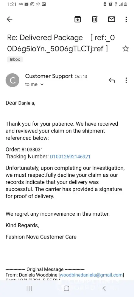 Fashion Nova Fashion Nova Refusing To Refund My Money For A Coat Never Received Since 8/2021