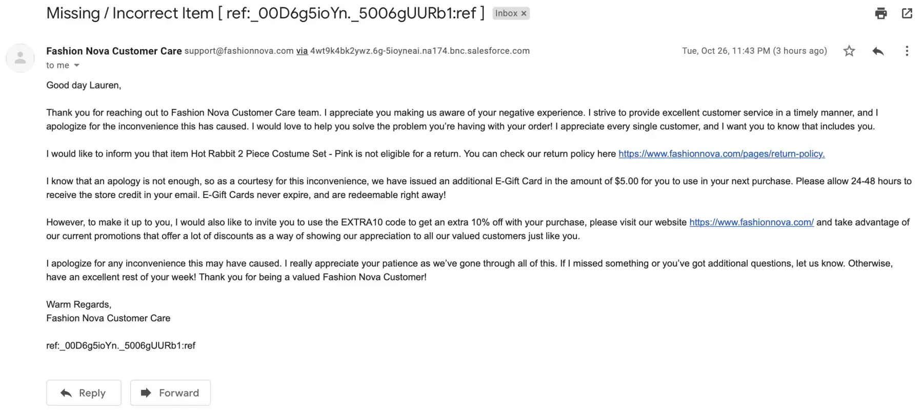 Fashion Nova ghosted by customer service