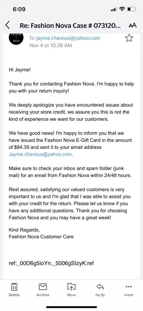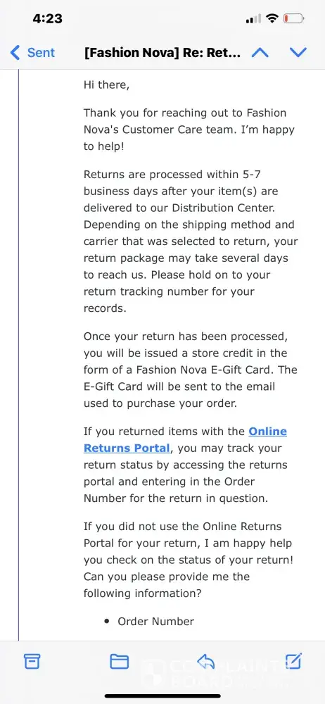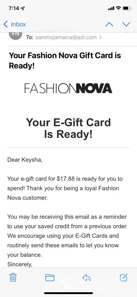 Fashion Nova I returned items and never received my Gift card
