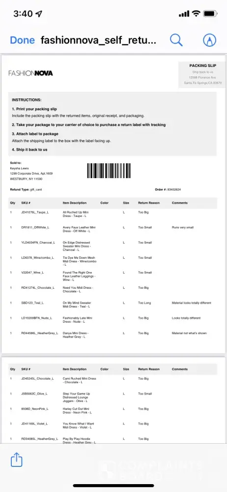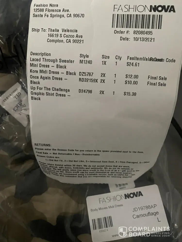 Fashion Nova Complaints Page 21 of 86