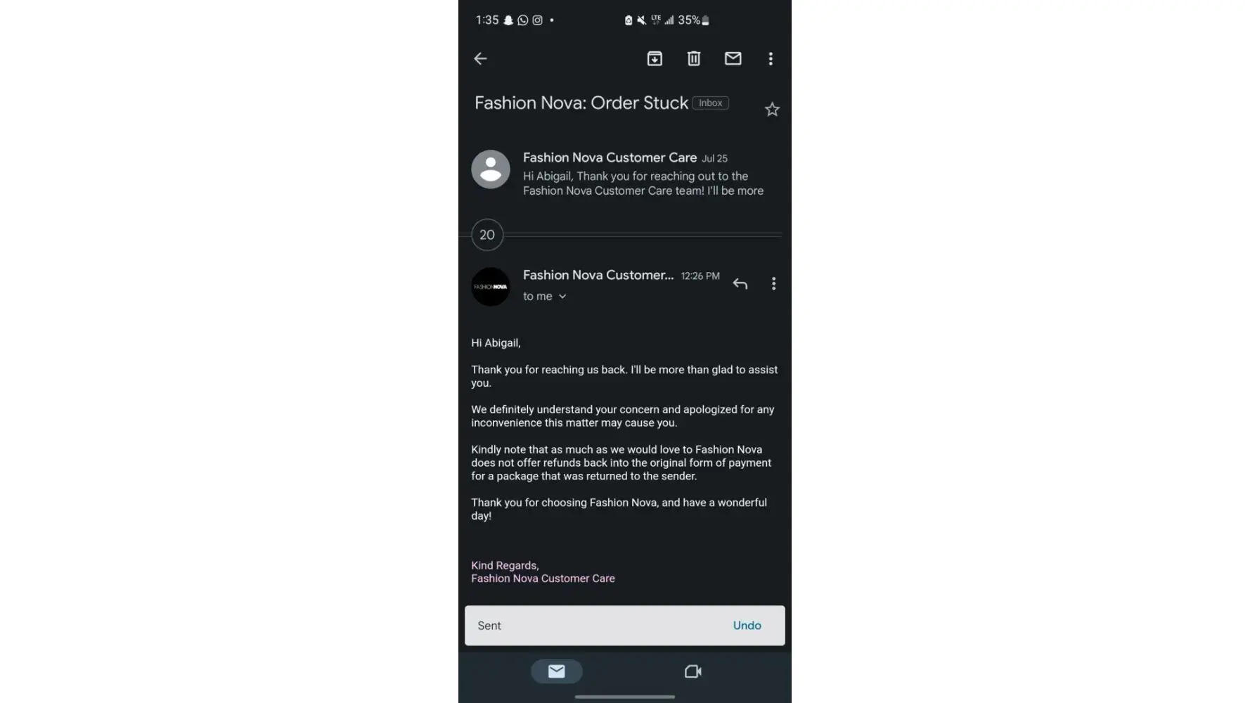 I reached out to fashionnova asking for them to reimburse my card for the items I returned. They kept sending me random automated emails.