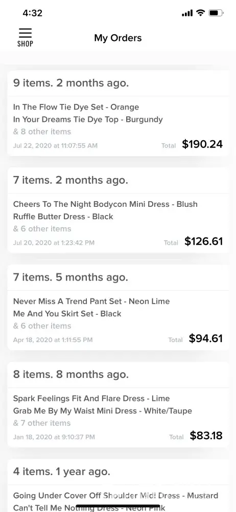 Fashion Nova Ordered items