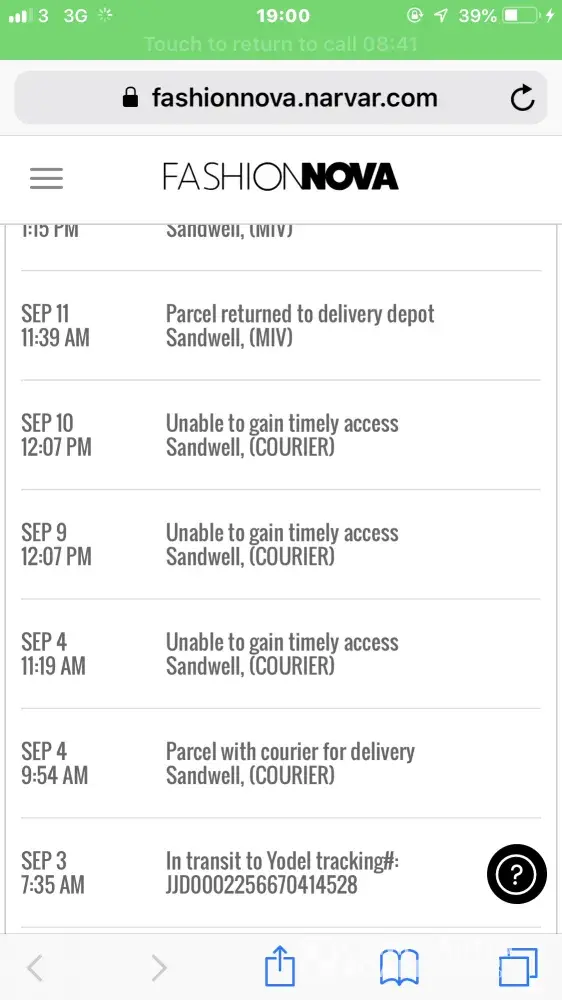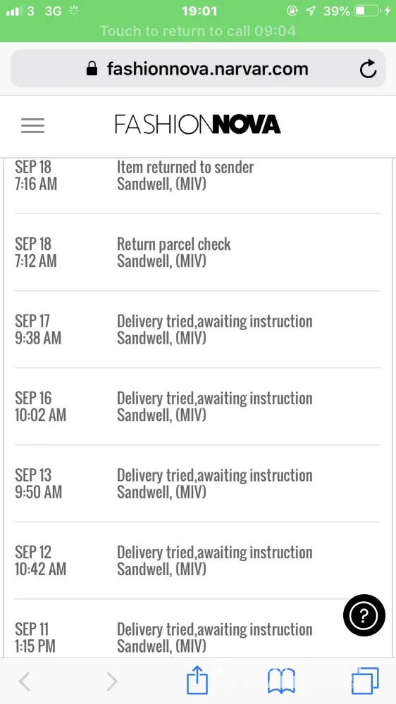 I then went on the website to find out the parcel had been returned to the sender (Fashion Nova).