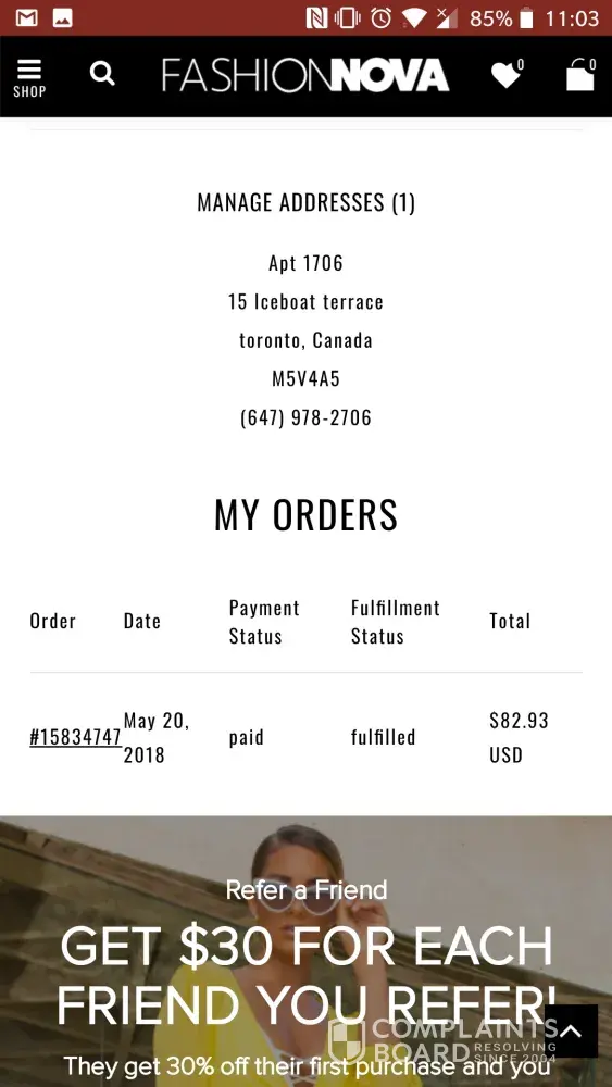 And then no follow up no response and no ownership by fashion nova whatsoever