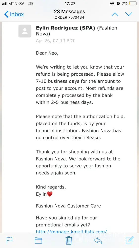 regarding a refund fashion nova owes me