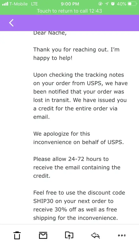 order never received