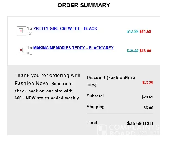 At this point I am beyond frustrated and disappointed. I had very high expectations for this company. I have attempted every way possible provided by fashion nova to resolve this to no avail. I will be filing a complaint with the BBB with documentation supporting my claim. I will also be contacting my banking institution and filing a claim for fraud on the part of fashion nova.