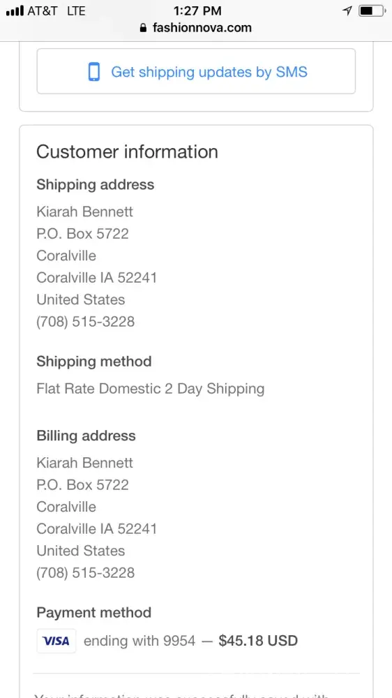 I used to be a huge advocate for Fashion Nova making like three-four orders a month, however, I'm finding this experience extremely discouraging. I've made an order since the 13th of April with 2 day shipping and have yet to receive any tracking or shipping information. I made another order shortly after that on the 19th which has already been delivered and still cannot receive any information on my previous order. This is utterly ridiculous and I have sent numerous emails to which all I keep getting is the automated response. I've attempted calling numerous times and can't get hold of anybody. I've tried contact via the various social media still nothing! I am at a point where I am ready to dispute the charges with my bank, get back my money and contact a lawyer. It is quite disappointing that I've made an order for almost $90 and up til now I still can't get any information. I need a response asap or I will have to resort to pursuing serious action against this.