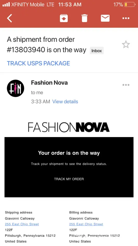 On the 8th i received an email stating that my package has been "delivered" so i go check to see if my package has arrived but nothing. With fashion nova being advertised as they are i thought this would be no issue but i was wrong! i contacted fashion nova and they basically are saying its usps problem i have to take it up on them (craziest thing i ever heard why should we be help responsible for something that's out of our control)