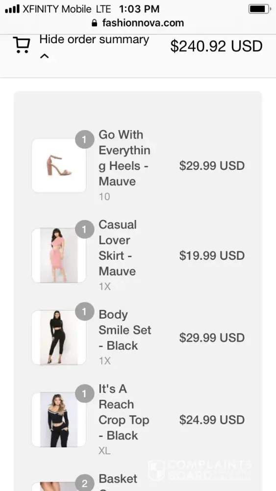 I ordered 10 pieces March 15, 2018. The order showed delivered on March 17, 2018. Two items were received which was a pair of heels and a teddy lingerie piece. The rest of my items were not included one of them being a robe. I wrote fashion Nova several times and they blamed the post office. The shoes I received were too big so I needed to make a return anyway. When I arrived at the post office to inquire about my full order and return my shoes; the post office informed me that the shoes I was returning was the same weight as the original package that they received from fashion Nova at the time of scanning it in. That let's me know that my items never left the warehouse. My birthday trip was messed up due to this and I have yet to receive a refund or proper communication to get my situation resolved. I'm so upset right now and I feel like I just gave them $189.00. DONT USE #FashionNova! You may or may not get your stuff and it's extremely difficult to get a response on your money if you get one at all because I did not!