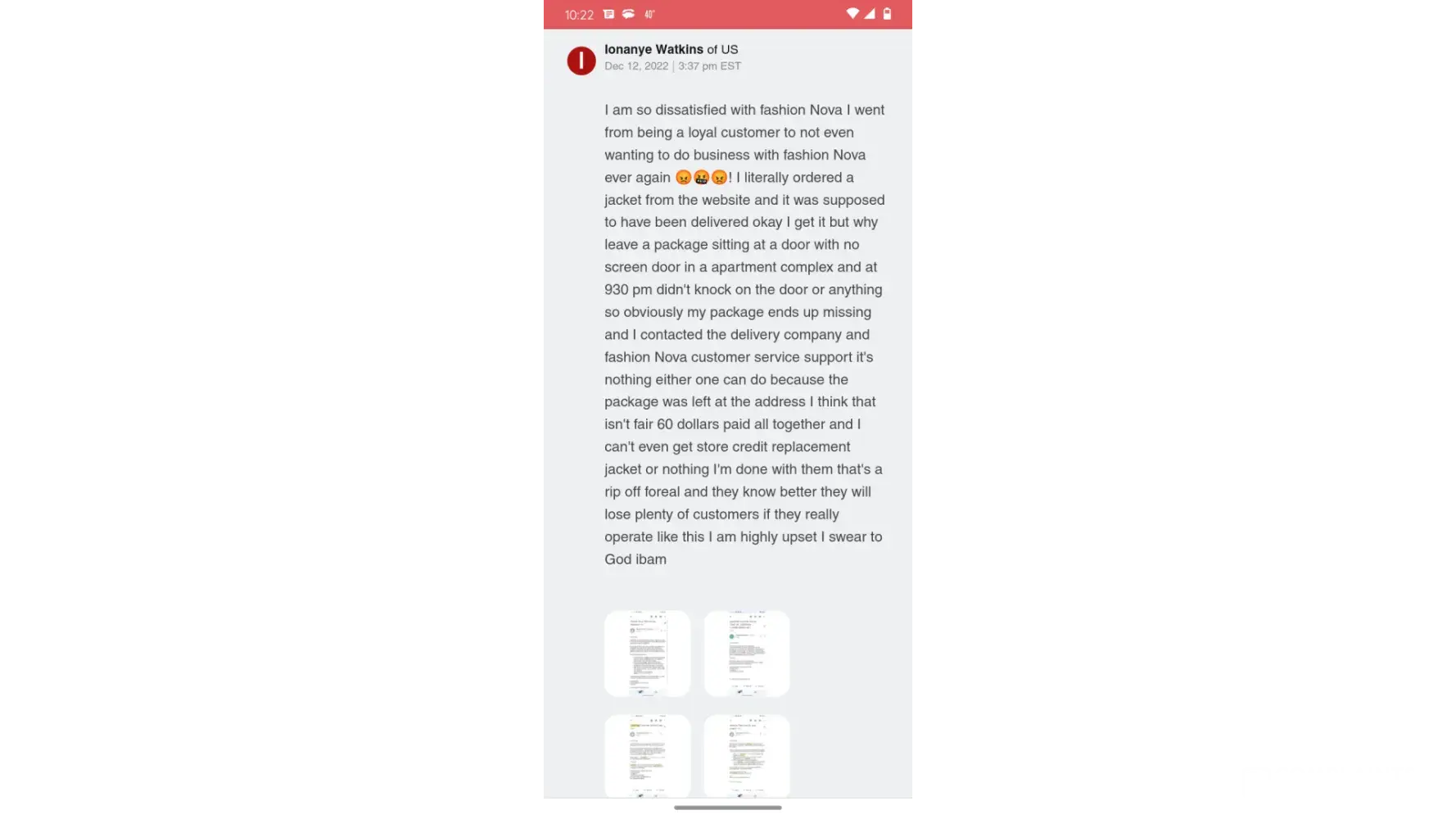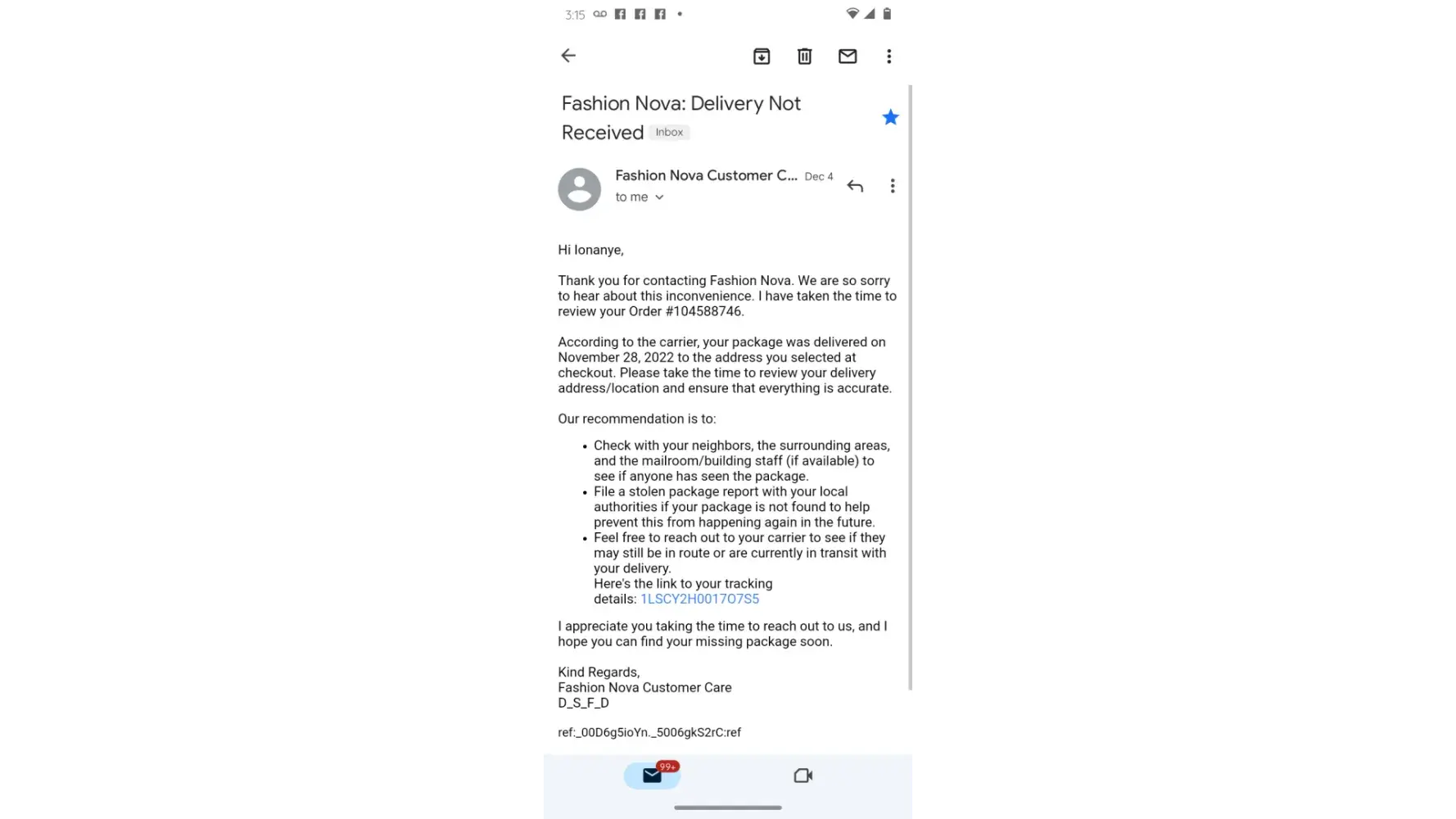 Fashion Nova — Missing/stolen package