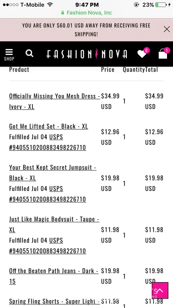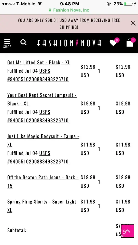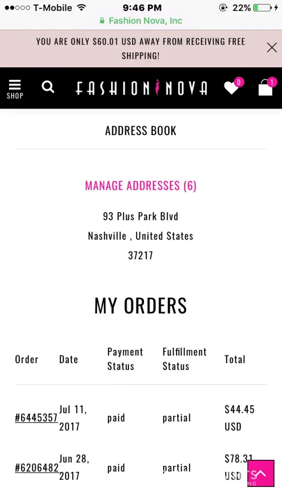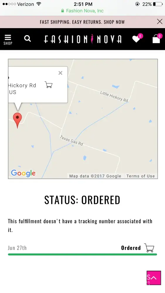 Fashion Nova order not yet shipped
