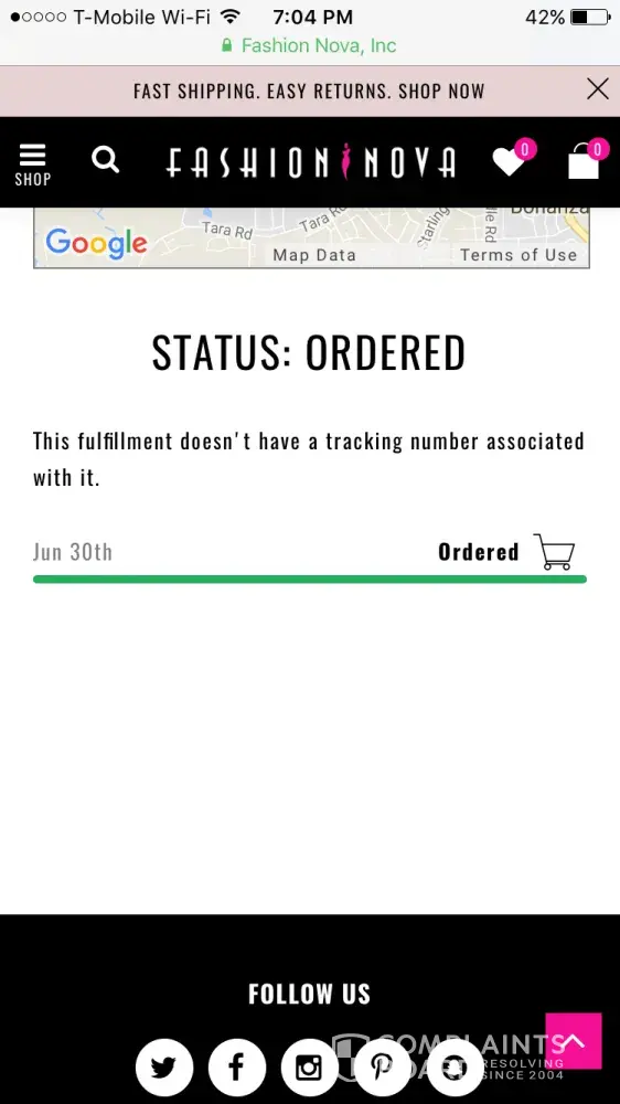 Fashion Nova charged my account weeks ago, no order, no status updates #6300893