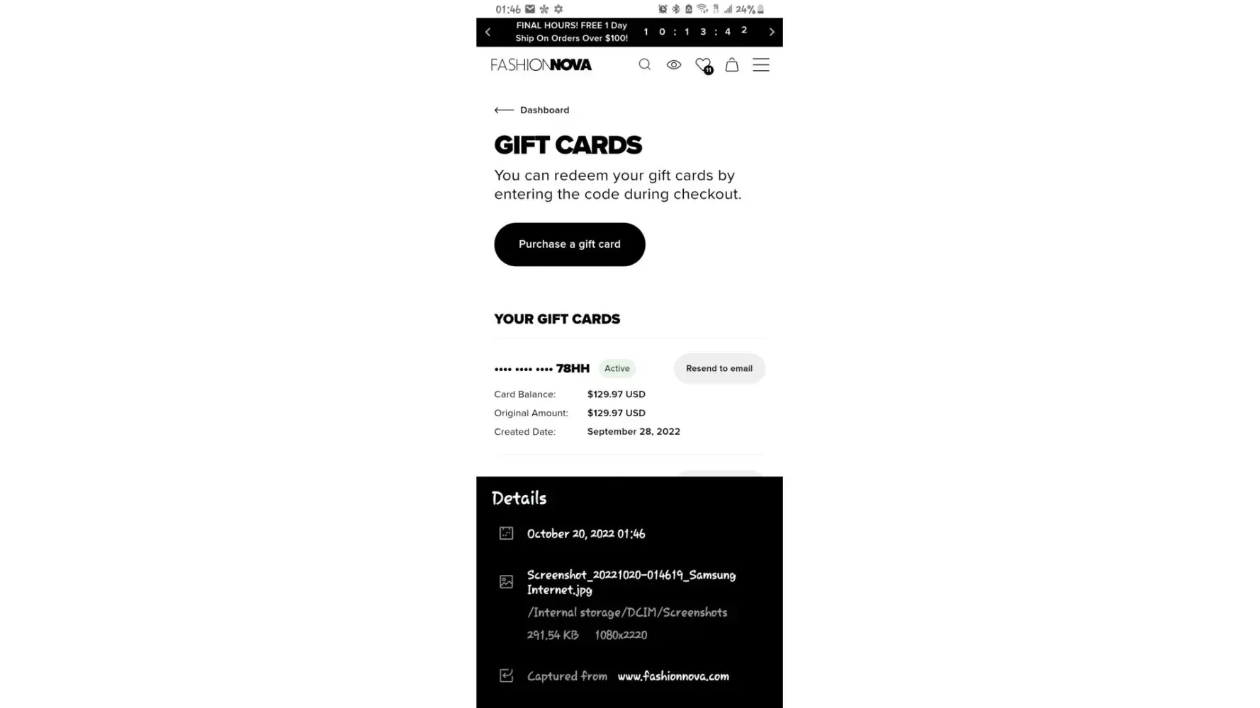 I am yet to receive an email with over $200 of store credit. Although I have proof on my Fashion Nova account that they do exist, I cannot use them because they don't provide the complete numbers. I've reached to them repeatedly over the span of a week and although I do get a response, I still get no e-gift card.